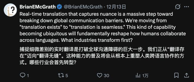 若是以前,你可能得手忙脚乱地掏出手机,打开翻译App,按下按钮,尴尬地把手机递到他嘴边,然后听着手机里传出毫无感情的「机翻」电子音。