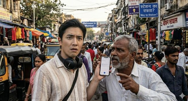 你戴着耳机走在印度孟买喧闹的街头,周围是嘈杂的叫卖声和完全听不懂的印地语。