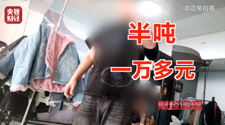 刘总告诉记者,当天直播间出售的衣物,都是从旧衣回收厂以吨为单位采购的,刘总强调,绝不能提及衣物是二手的。因为直播间美颜与灯光效果,网民根本看不出衣物实际品相,主播再稍加忽悠,货物就很好卖。