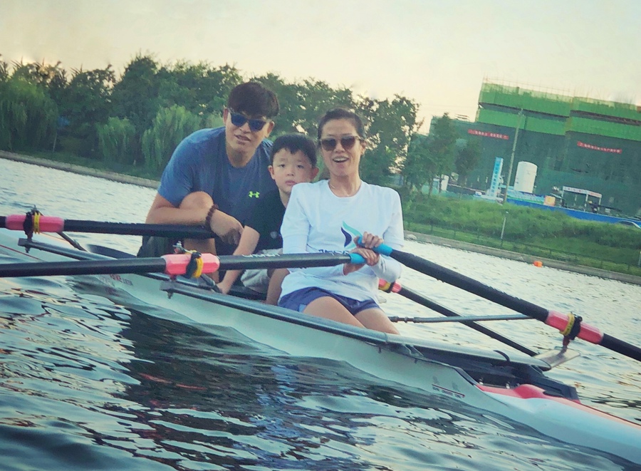李竹芸与赛艇的缘分,始于丈夫常勇平。2010年,她初识这位前北京队赛艇运动员时,赛艇还是中国“冷门运动”的代名词。“第一次接触赛艇是去北京延庆的训练基地,我直接下了双人艇,手握船桨却根本不听使唤,完全划不动。”回忆起初体验,李竹芸笑称那是“观光式下水”,却没料到,这场“狼狈”会成为全家与赛艇结缘的起点。