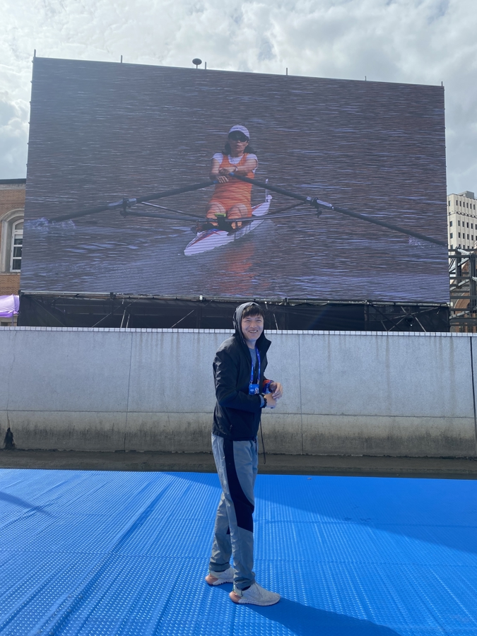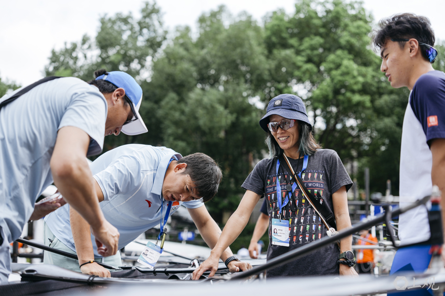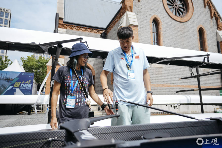在“上艇”五周岁之际,上海也终于迎来了中国历史上首个赛艇世锦赛。第一时间,李竹芸给全家买了VIP票。曾参加过世锦赛的常勇平,在现场不禁感慨:“不愧是上海办赛,细节满分。”而这场世锦赛,更像一场中国赛艇人的大聚会,让全家倍感亲切。他们见到了从美国回来的老赛艇人范安萍,聊起了2019年李竹芸参加波士顿查尔斯河比赛的往事,当时李竹芸和参加过1984年洛杉矶奥运会的史美萍组队参赛,史美萍的老教练范安萍和队友陈昌凤来给她们加油打气。“这次在上海团聚,这种传承的感觉特别好。”
