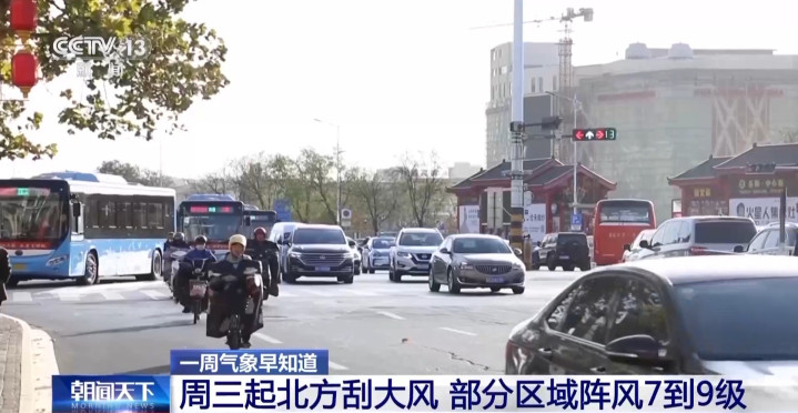大风方面,周三开始,西北地区至华北东北等地区将会陆续刮起4~6级的偏北风,部分地区阵风风力可达到7~9级。